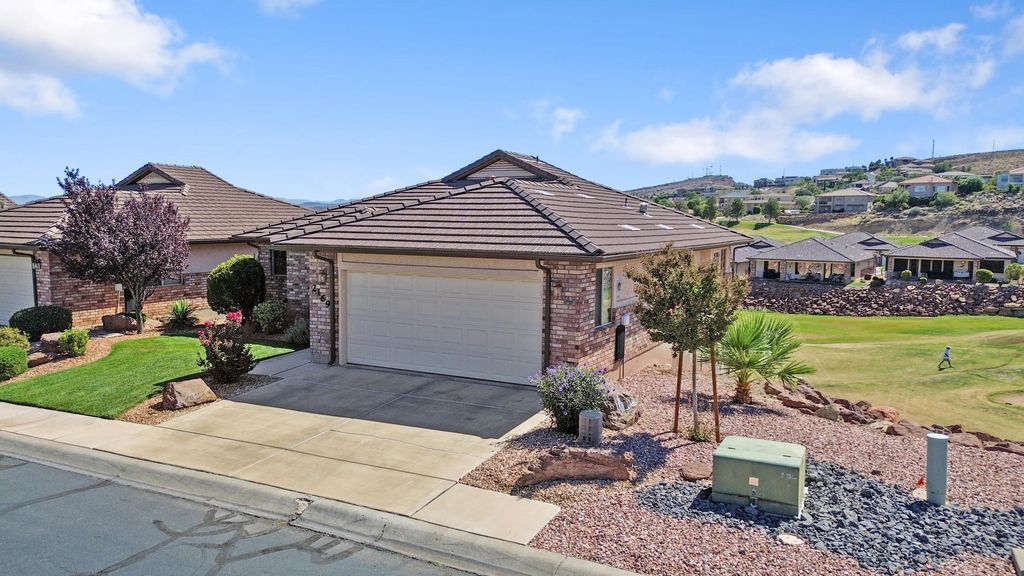 Former Model Home on Southgate Golf Course "” Includes TWO LOT Parcels (SG-LY-5-99 & SG-LY-5-98)*Premium property w/unobstructed views of Red Mountains, Zion & City lights*Situated directly on the 13th Fairway & Green*Large picture windows & east-facing patios capture morning sun & provide shaded evenings*Move-in ready w/thoughtful upgrades* A/C 2022, Water Heater 2024*Walkout basement w/private entrance is perfect for an ADU or guest suite, offers flexible living options*Simply Safe Security System*Community amenities include indoor & outdoor pools, hot tub, clubhouse, fitness center, pickleball/tennis, yoga, game nights, aerobics, book club plus full yard maintenance*Easy living in a highly desirable golf course location*Rare opportunity "” premium home + adjacent lot, all in one package!
