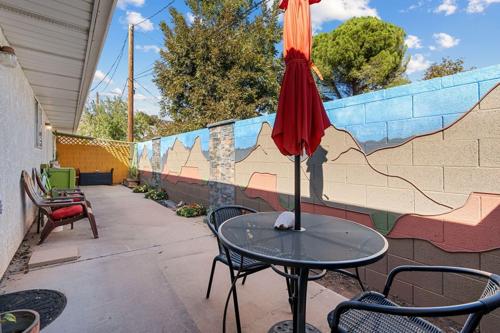 Don't Miss this SUPER ADORABLE END UNIT Patio Home in a cozy quiet community. This recently UPDATED HOME includes an open GREAT ROOM concept, newer style vinyl WOOD PLANK flooring, updated lighting fixtures, and NEW NEUTRAL PAINT on all the walls.The updated KITCHEN has refinished Cabinets, and updated Appliances. All Appliances Stay with the Home. A Furniture Package is available. The private backyard has a private secluded backyard patio area for BBQ & outdoor patio furniture. The friendly Community includes landscape - Perfect starter home, 2nd Home, Winter Home or retirement get-a-way spot in SUNNY STG. Prime location between Bluff St & Main St. Downtown, near Shopping, Utah Tech University and All STG has to offer.