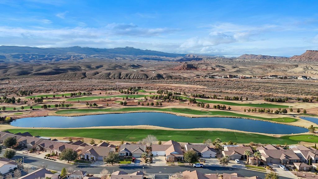 Truly one of a kind in SunRiver's premier 55+ community, this rare 4-bedroom, 4.5-bath walkout basement home offers 4,060 sq ft of beautifully updated living space, including 2,108 sq ft on the main level. Recent upgrades include a remodeled kitchen, and refreshed bathroom's. Large windows capture stunning views of the golf course, ponds, and Pine Valley Mountain, filling the home with natural light and showcasing Southern Utah's scenery. The thoughtful floor plan offers multiple family rooms, inviting sitting areas, and formal dining spaces, creating ideal flow for both everyday living and entertaining. The walkout basement features a wet bar and a versatile flex room perfect for hobbies, fitness, office space, or additional guest use, along with exceptional storage throughout. Step outside to enjoy both a large covered deck and a covered patio belowproviding ideal outdoor living spaces year-round. The backyard is generously sized for the community, situated on a .13-acre lot. Enjoy the comfort of a rare, air-conditioned 3-car garage that is extra deep, offering ample room for additional workspace, storage, or recreational gear. SunRiver residents enjoy championship golf, clubhouse dining, pools, fitness center, pickleball, walking trails, and an active social calendar. Southern Utah's mild winters make year-round outdoor living a highlight, while the nearby Southern Corridor exit provides quick access to new medical facilities, shopping, dining, and downtown St. George. This home offers space, views, functionality, and lifestylean exceptional opportunity in SunRiver.