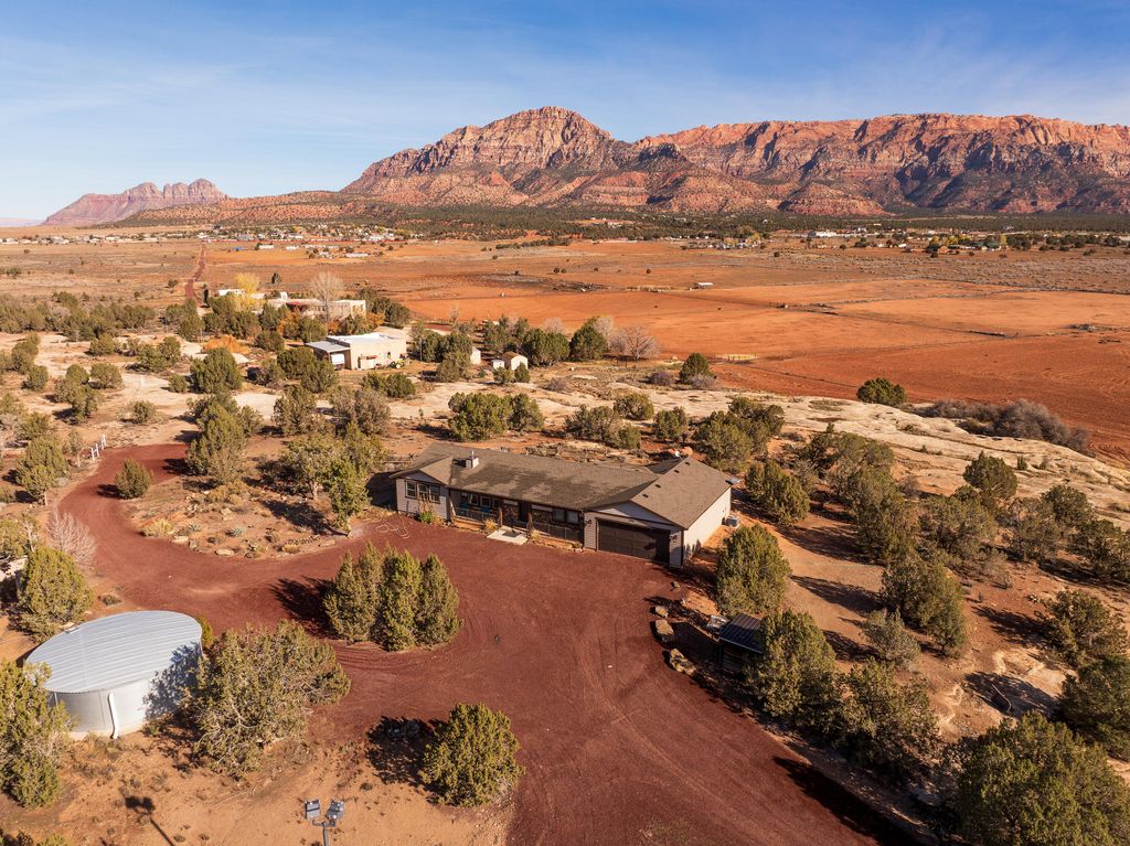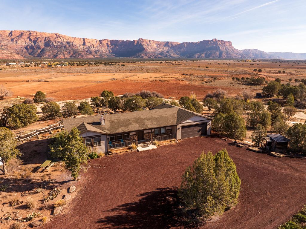 Secluded 20-acre property in Apple Valley featuring a 2019-built 3 bed, 3 bath home with 1,577 sq ft and an 883 sq ft 2-car garage. Property includes 3 acre-feet of water rights plus an existing well producing approx. 50 GPM (unmetered). Mostly electric home with heat pump, electric water heater, and propane fireplace. Full RV hookups on site. Approximately 17 acres sheep-fenced with full perimeter fencing and gated access. Includes a 49,000-gallon fire protection water tank. Zoned Agricultural. Property currently supports one primary residence plus potential for an accessory dwelling per town ordinance. Based on current zoning and surrounding land use, a future split into two approx. 10-acre parcels may be possible, subject to town approvals, water requirements, and road standards. Access via existing dirt/gravel roads. Buyer to verify all zoning, subdivision, and development potential.