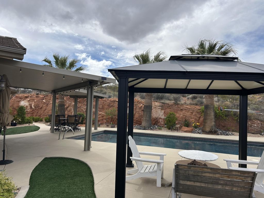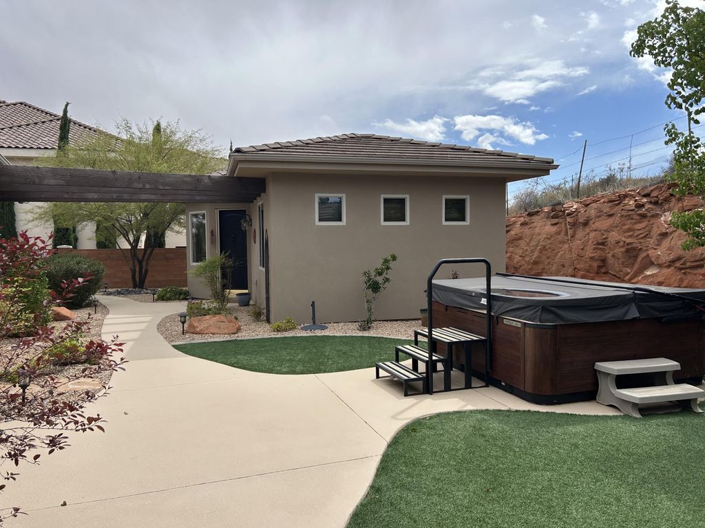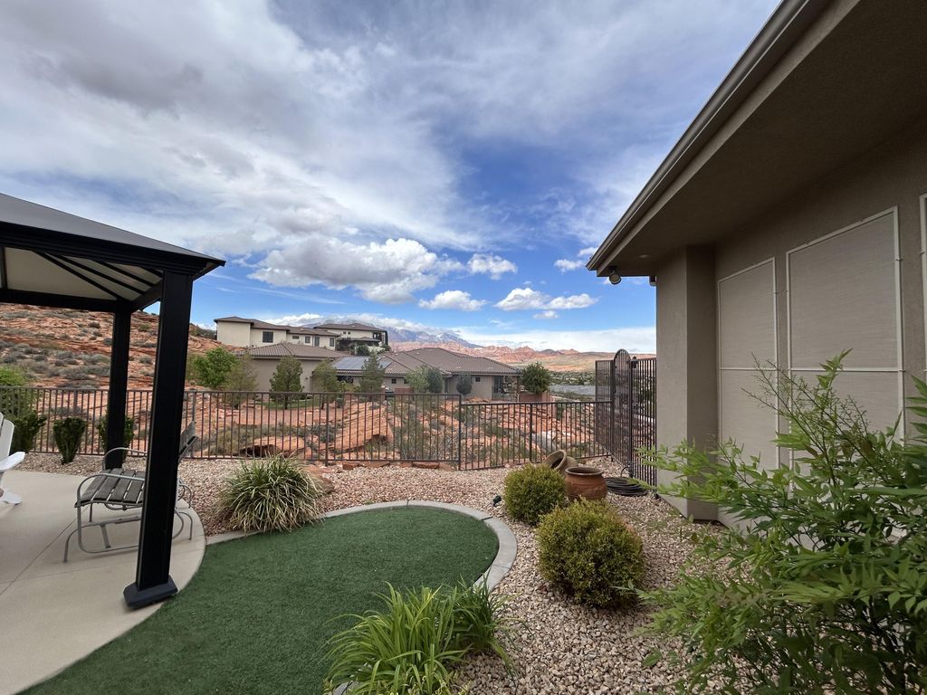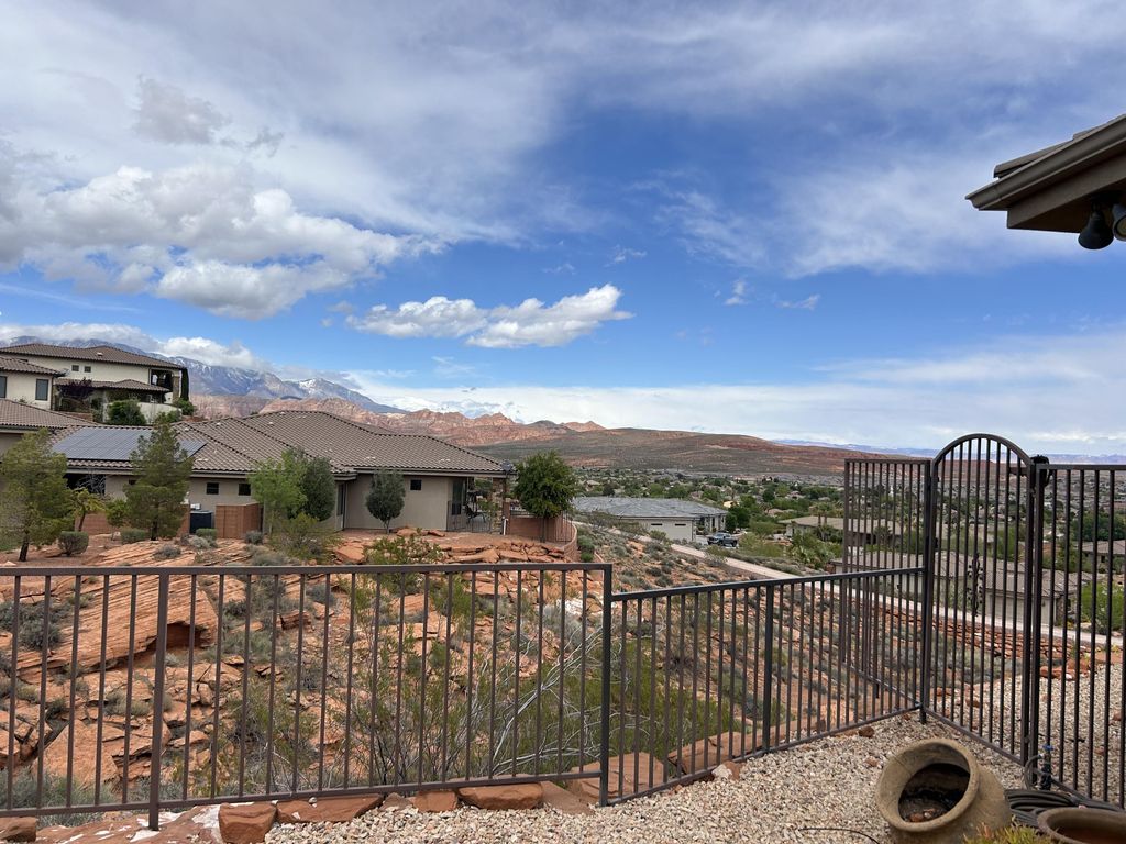 Incredible single story property located in the prestigious gated community of Westgate Hills situated on ,90 acres Breathe taking views of Zion and the Pine Mountains This home features 4327SF in the main house with 3 bedrooms & 31/2 bathrooms, an office, formal living room, dining room, family room & large gourmet kitchen with Sub Zero /Wolf Appliances w/ Abundant of granite countertops. The detached casita with 511SF which includes a living kitchenette area, bathroom & bedroom. Its own above ground spa. Backyard also includes an inground pool and spa, built in Bull BBQ w/ fridge & lots of privacy backing up to the Red Cliffs Reserve. Primary bedroom has incredible views of the Pine Mountains. This exceptional opportunity allows you to entertain play & embrace the Southern UT lifestyle