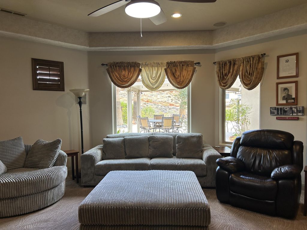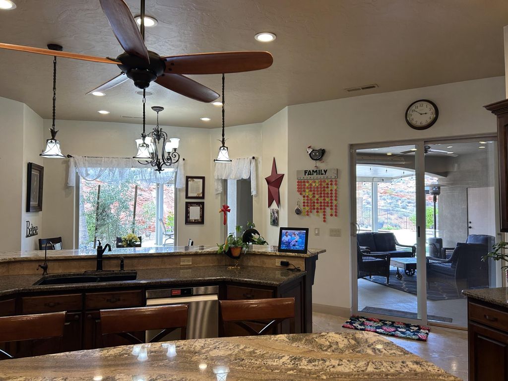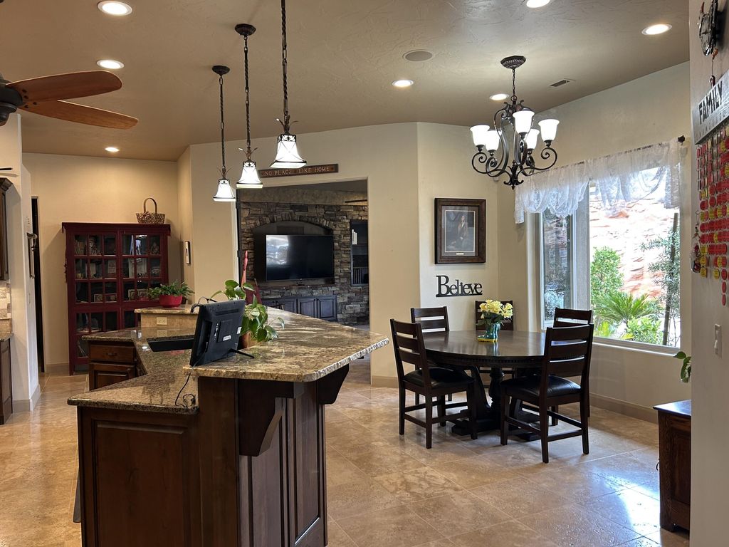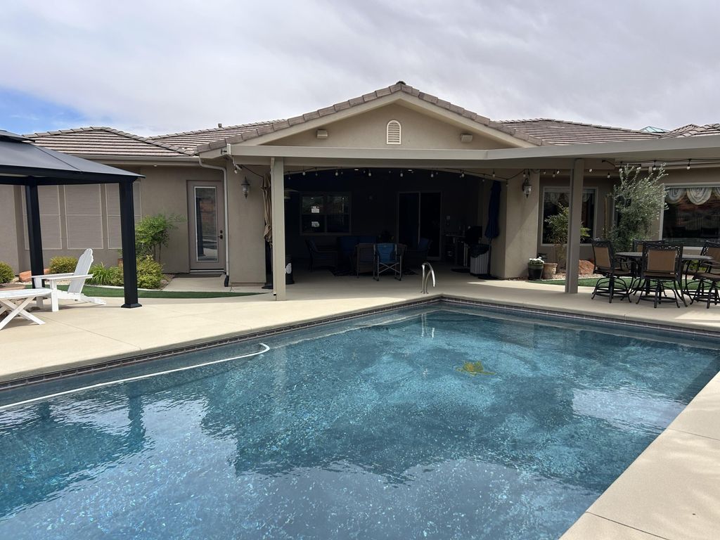 Incredible single story property located in the prestigious gated community of Westgate Hills situated on ,90 acres Breathe taking views of Zion and the Pine Mountains This home features 4327SF in the main house with 3 bedrooms & 31/2 bathrooms, an office, formal living room, dining room, family room & large gourmet kitchen with Sub Zero /Wolf Appliances w/ Abundant of granite countertops. The detached casita with 511SF which includes a living kitchenette area, bathroom & bedroom. Its own above ground spa. Backyard also includes an inground pool and spa, built in Bull BBQ w/ fridge & lots of privacy backing up to the Red Cliffs Reserve. Primary bedroom has incredible views of the Pine Mountains. This exceptional opportunity allows you to entertain play & embrace the Southern UT lifestyle