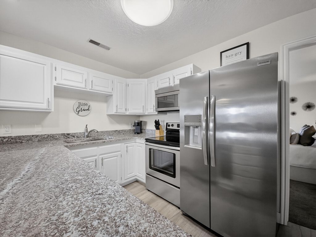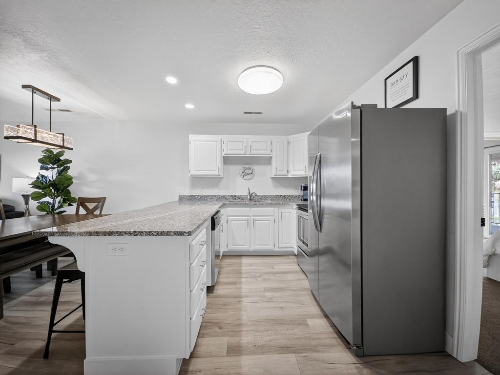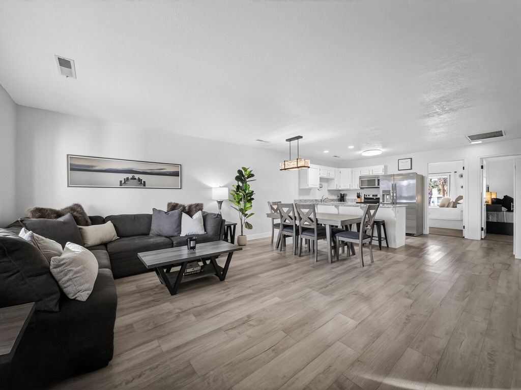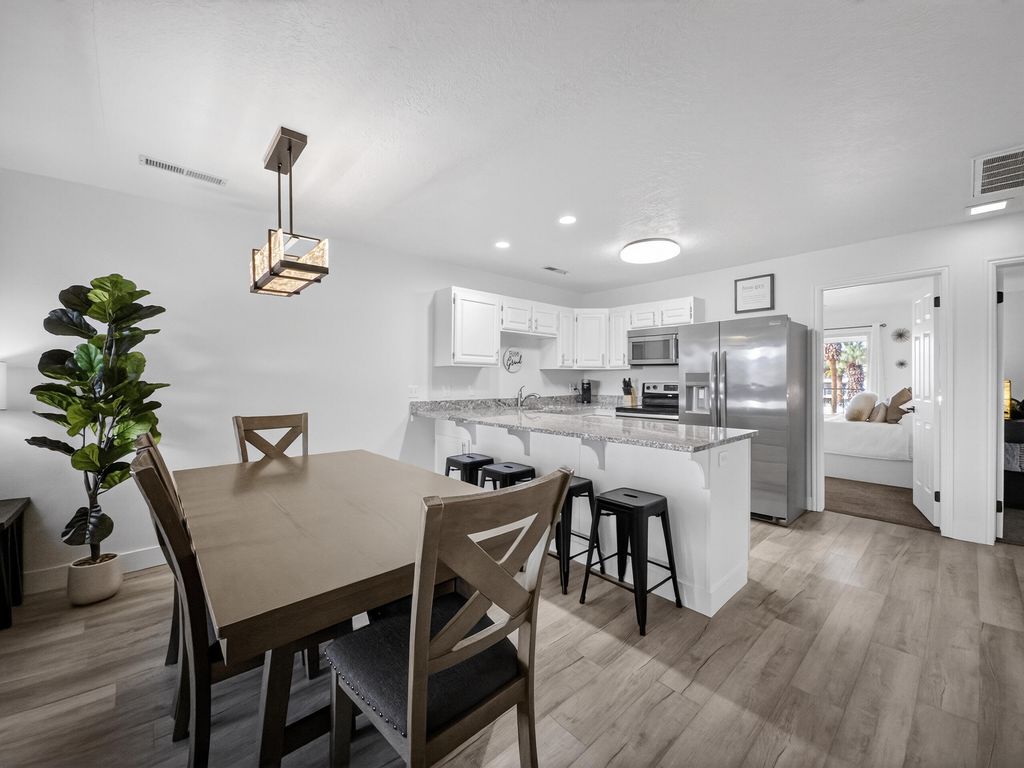 Welcome to Las Palmas Resort where this top-floor condo stands apart as a fully remodeled, truly turnkey retreat designed for effortless living and high-performing nightly rentals. This unit has been completely refreshed from top to bottom, featuring brand-new bathrooms, new appliances, and stylish modern furnishings all included in the price. Every detail has been thoughtfully curated, making this home ready from day one. The open-concept floor plan is filled with natural light and anchored by durable, modern LVP flooring, creating a clean, contemporary feel throughout. Also included is a washer/dryer in the unit and a detached garage. Whether you're relaxing inside or stepping out onto the top floor covered patio to take in the incredible red rock and resort views, this home delivers a seamless blend of comfort and style. Beyond the condo, enjoy one of Southern Utah's most amenity-rich communities: five resort-style pools (indoor & outdoor), pickleball courts, clubhouse, and playgroundsperfect for owners, guests, and investors alike. Approved for nightly rentals or second-home use, this property offers exceptional flexibility and income potential. Location seals the deal. Minutes from Snow Canyon State Park, Black Desert Resort, golf, hiking, biking, shopping, and dining with quick access to the highway for easy exploring. Entertainment is right around the corner at The Grip, The Rinq and Nets on Fire making this an unbeatable home base for adventure and fun. Fully remodeled. Fully furnished. Exceptionally clean. Incredible views. This is not just another condo at Las Palmas, this is the one that's ready to perform, impress, and make memories immediately.