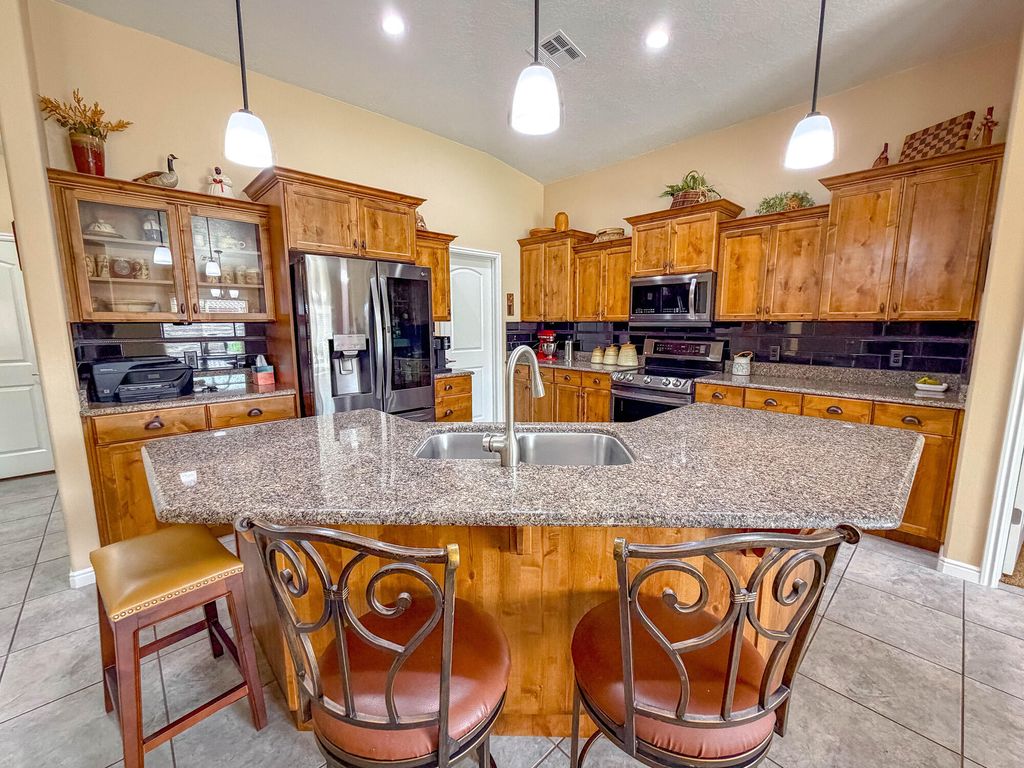 This charming 1,680 sq. ft. rambler sits on a 0.21-acre lot and offers comfortable single-level living with great outdoor space. The home features a freshly painted exterior and a bright kitchen with under-cabinet lighting. Step outside to a fully fenced, beautifully landscaped backyard perfect for relaxing or entertaining. Enjoy evenings around the fire pit, gather under the extended covered patio, or grow your own produce in the custom-built raised garden beds with separate irrigation. With plenty of space to enjoy and convenient access to shopping, schools, and abundant outdoor recreation, this home offers the perfect blend of comfort, convenience, and lifestyle. Comes with a gererator for the home.