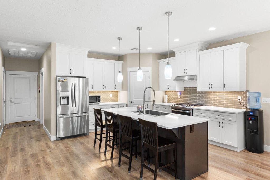 Spacious and beautifully designed 6-bedroom, 4-bathroom home located in the heart of Southern Utah, offering the perfect blend of comfort, functionality, and stunning surroundings. This home features an open and inviting floor plan with a cozy fireplace, ideal for relaxing evenings. The loft-style family room provides additional living space perfect for a media room, play area, or home office. The primary suite includes a luxurious garden tub, creating a peaceful retreat at the end of the day. Enjoy seamless indoor-outdoor living with a covered deck and patio, perfect for entertaining or taking in the breathtaking red rock views. With ample parking space for vehicles, RVs, or recreational toys, this property is well-suited for both everyday living and adventure. A rare opportunity to own a home that combines space, versatility, and iconic Southern Utah scenery.